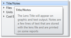 Lens Title The lens title will appear on graphic and text output. The title is specified by typing the title in the required space.