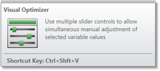The Visual Optimizer is available in the Manual Adjustment section of the Optimize tab. This feature uses multiple slider controls to allow simultaneous manual adjustment of selected variable values.