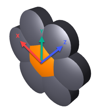 次に、アレイのローカル座標の Z 軸を中心として、そのオブジェクトが角度γだけ回転します。アレイの最初のエレメントは、この位置になります。