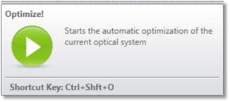 [最適化] (Optimize!) ボタンは、[最適化] (Optimize) タブの [自動最適化] (Automatic Optimization) グループにあります。このボタンにより、現在の光学系の自動最適化で使用する [ローカル最適化] (Local Optimization) ツールが表示されます。