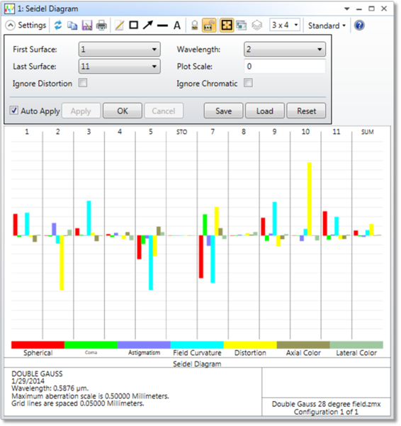 未変換のザイデル収差係数を棒グラフとして表示します。