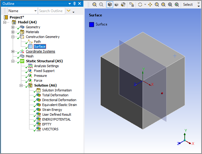 For the Surface scoping, the following code displays the result in tabular format.