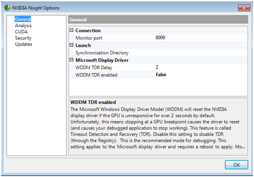 Figure 6: NVIDIA Nsight Options dialogClick OK.