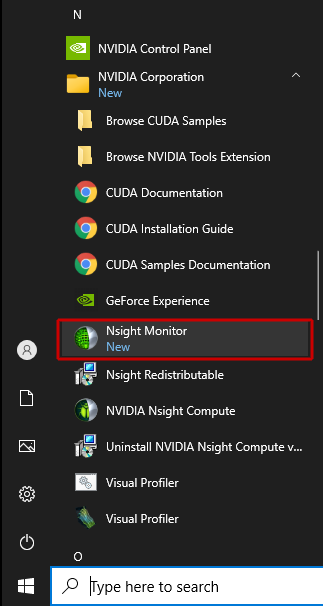 Figure 4 Nsight Monitor in Windows Start menu