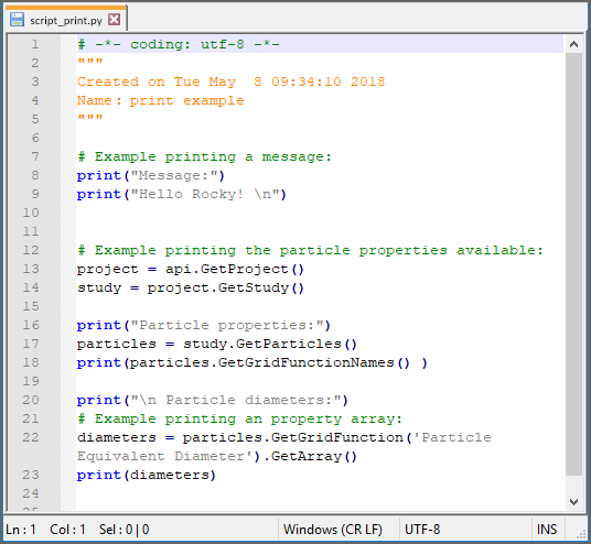 Python is the programming language upon which Rocky is built. While knowing how to understand Python is not a requirement for using Rocky, there are several ways you can use the language to customize and extend the features included within the program.