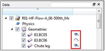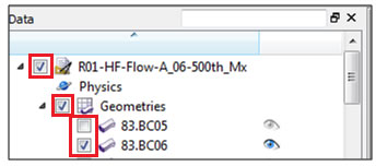 The Data panel is the area you use to select the entity with which you want to interact. The tree-like structure is hierarchical and is roughly organized by the steps required to setup, process, and analyze your project. (See Figure 1.)