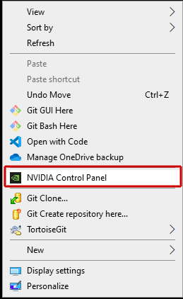 Figure 7: Windows desktop right-click menu showing NVIDIA Control Panel optionIn the NVIDIA Control Panel window, do all of the following: