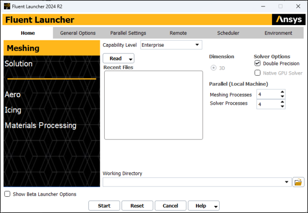 From the Windows menu, select > Fluid Dynamics > Fluent 2024 R2 to start Fluent Launcher.
