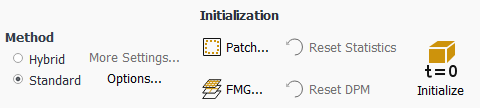Initialize the flow field using the Initialization group box of the Solution ribbon tab.