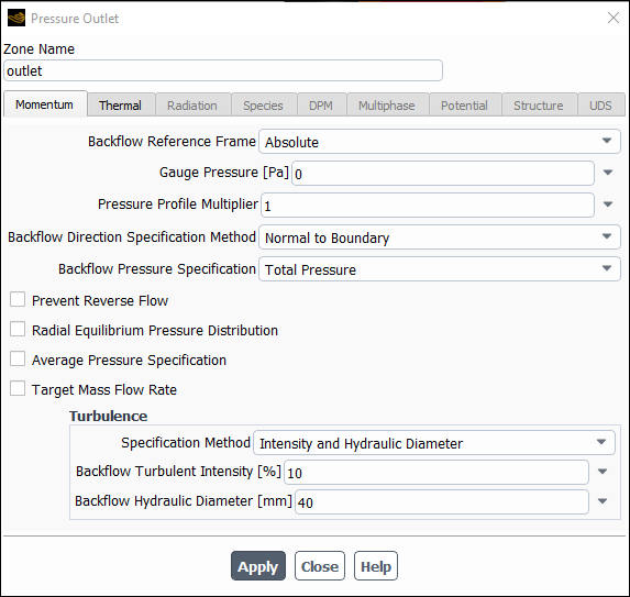 outlet) to be assigned to the manifold's outlet.For the Zone Type, change the setting to pressure-outlet.