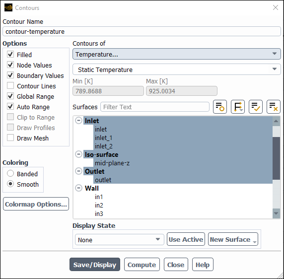 contour-temperaturefor the Name.Select Temperature... and Static Temperature from the Contours of drop-down lists.