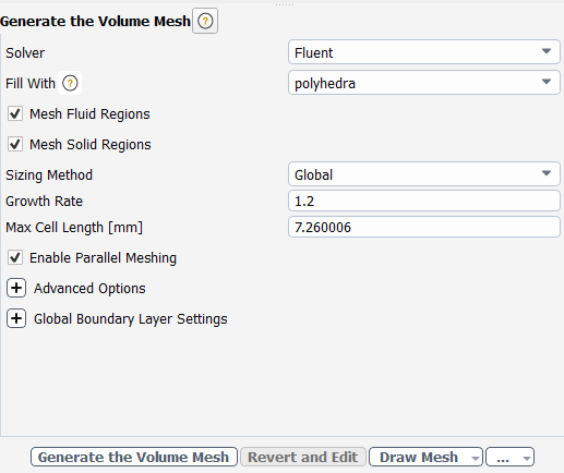 Select the Generate the Volume Mesh task, where you can set properties of the volume mesh.