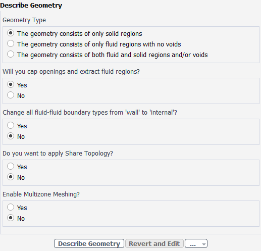 When you select the Describe Geometry task, you are prompted with questions relating to the nature of the imported geometry.