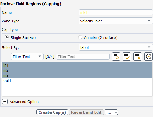 Select the Enclose Fluid Regions (Capping) task where you can cover or cap any openings in your geometry in order to later extract the enclosed fluid region.