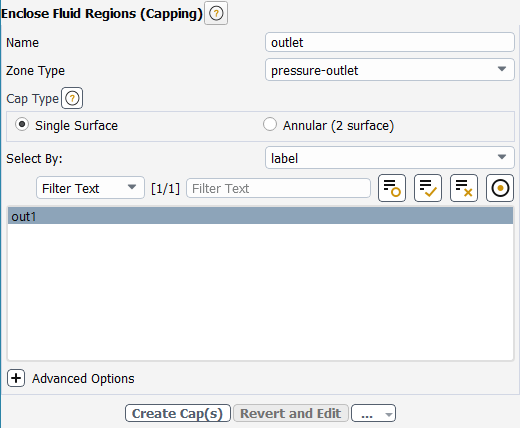 In the Name field, assign a name for the capping surface (for example,