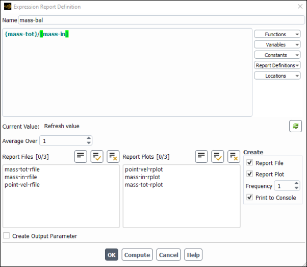 mass-balfor the Name of the expression.Select mass-tot from the Report Definitions drop-down list on the right.