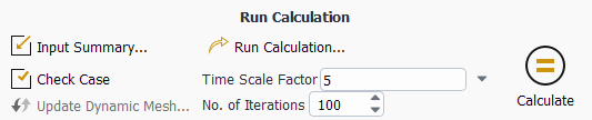 Start the calculation by adjusting the time scale factor to 5 and requesting 100 iterations in the Solution ribbon tab (Run Calculation group box).