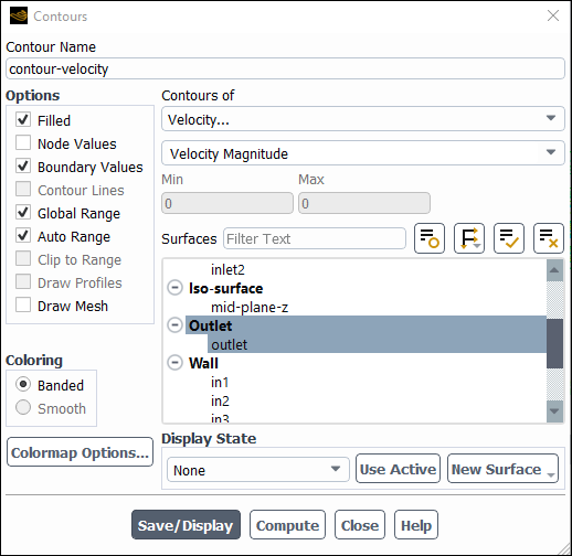 contour-velocityfor the Name.Select Velocity... and Velocity Magnitude from the Contours of drop-down lists.