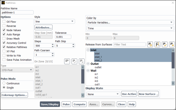 pathlines-1for the Name.Select Particle Variables... and Time from the Color by drop-down lists.