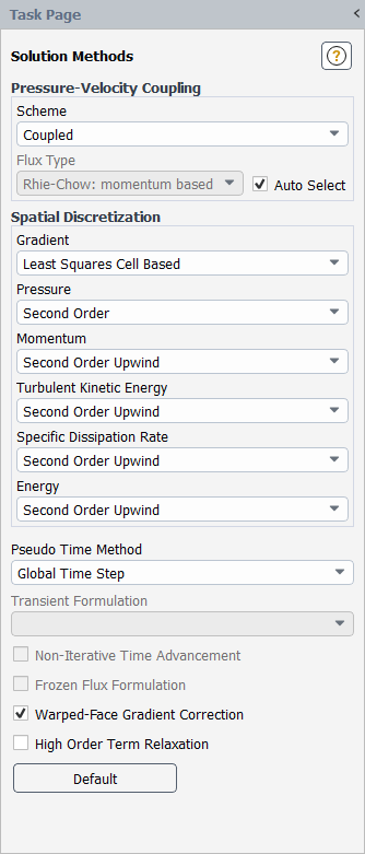 Since a fluid region is extracted from the solid model and capping surfaces are added, the default settings are appropriate.