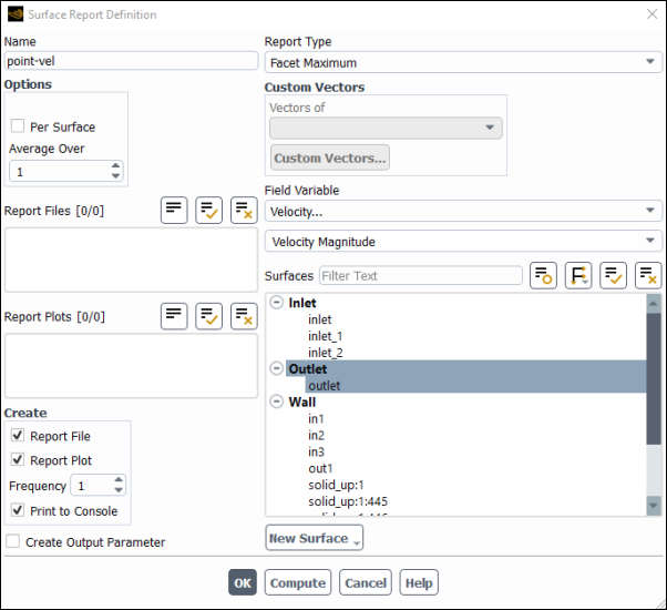Enable Report File, Report Plot, and Print to Console in the Create group box.