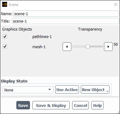 In the Scene dialog box, set the Transparency of mesh-1 to 50.