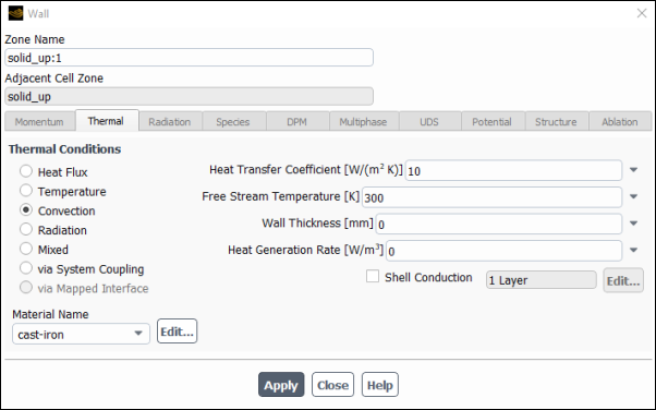 fluid1andsolid_upfrom the From Zones... list.Click .