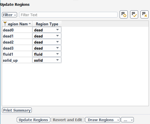 Select the Update Regions task, where you can review the names and types of the various regions that have been generated from your imported geometry, and change them as needed.
