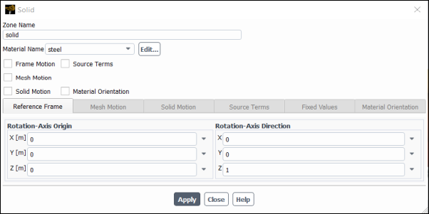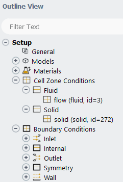 Verify that a solid cell zone is already defined, as this is necessary to be able to enable a structural model. You can view the existing cell zones in the Outline View window.