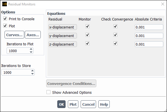 Select Stress Free from the X- and Y-Displacement Boundary Condition drop-down lists.
