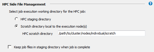 By default, job files will be deleted from the cluster staging directory after the job has run. Choosing Keep job files in staging directory when job is complete may be useful for troubleshooting failed jobs. However, retained job files will consume disk space, and require manual removal.