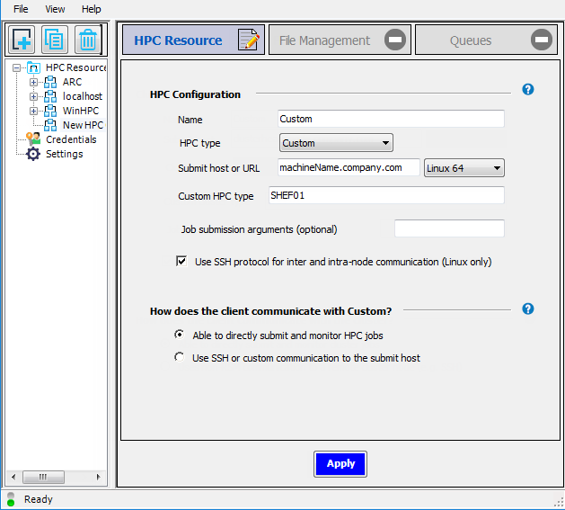 machineName.company.com), then select the OS of the submit host from the adjacent dropdown.In the Custom HPC type field, enter