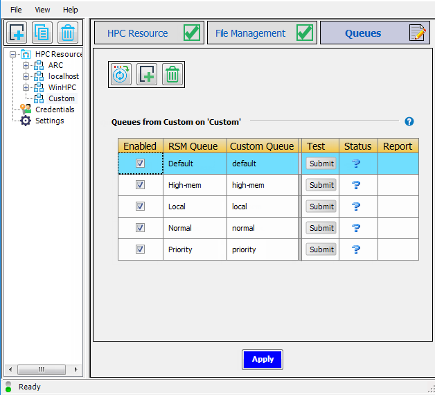 Priorityqueue to High Priority to make the purpose of that queue more clear to users. Note that each RSM queue name must be unique.For each RSM Queue, specify whether or not the queue will be available to users by checking or unchecking the Enabled check box for that queue.