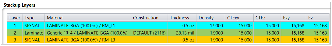 CCA Property of the New Detailed Component Based on the Property of the Original BGA Board Units Package Units Board Length Package Length Board Width Package Width Board Thickness Laminate Thickness Conductor Material Substrate Material Conductor Percentage 100 All other parameters Default Sherlock Parameters