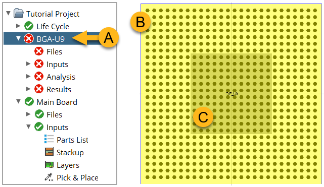 Note: For the purpose of explanation, the instructions in this section use BGA component U9 from the Sherlock tutorial as an example. See Tutorial: Project Overview.