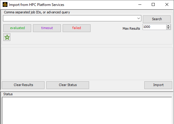 The Import from HPC Platform Services window opens.