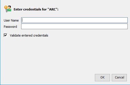 Enter a User Name and Password that can be used to access ARCMASTER, then click . The specified credentials will be cached, enabling any user using this configuration to submit jobs to ARCMASTER.