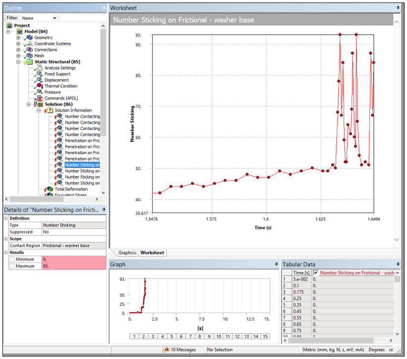The structural result tracker for Contact enables you to view contact information "live" as the solution processes. This enables you to observe trends that can help you diagnose problems. For example, a decreasing number of contact points indicate a trend towards a loss of contact.