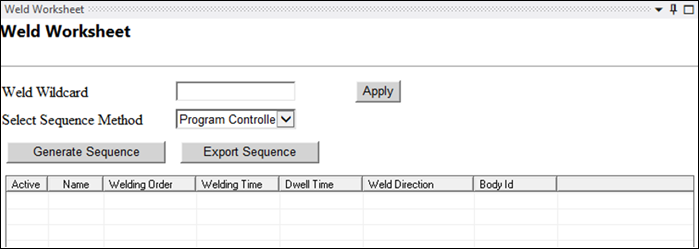 A Weld Setup object can be inserted under a or analysis. When this weld object is inserted, the Weld Worksheet opens in the Mechanical editor.