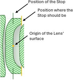 this case the surface of the Stop is positioned at the origin of the lens' surface. A problem arises