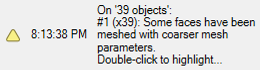 If it passes, the following warning message appears: Some faces have been meshed with coarser mesh parameters.