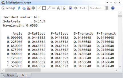 The reflection and transmission as a function of incident angle and wavelength are exported in the *.odx file.