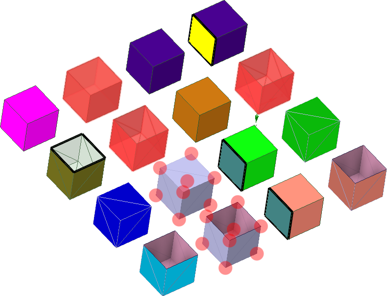 Faceted geometries with no material appear with red circles highlighted on their vertices. |