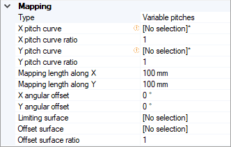 Note: X pitch curve must cut the yOz plane of the 3D texture. Y pitch curve must cut the xOz plane of the 3D texture. - To define the spacing of the patterns along X and/or Y, set the pitch ratio of each curve.
