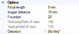 In the Optics section, define all the parameters of the camera: