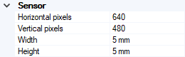 In the Sensor section, define the size and resolution of the sensor: