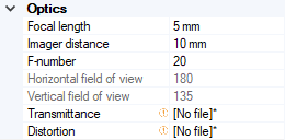 Note: According to the *.OPTDistortion file model used as input of the Camera, the Optics section provides you with different parameters.