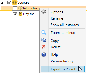 To export a Speos object to a preset: