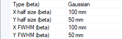 - the FWHM for X and Y.