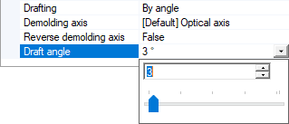 Set Drafting to By angle if you want to create an angle between the demolding axis and the prism to ensure a safe removal of the guide from the mold.